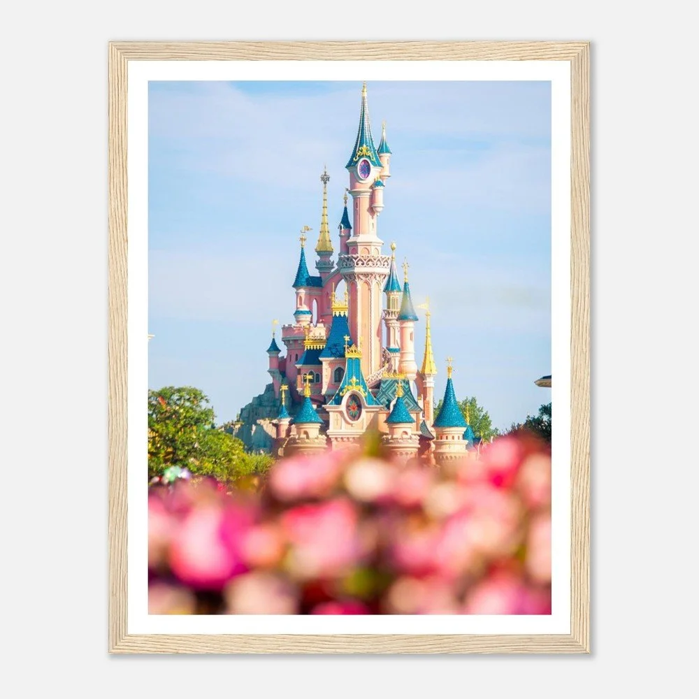 Disneyland Paris Floral Castle - Wooden Framed Premium Matte Poster